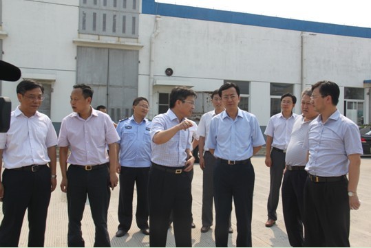 上午十時(shí)左右,李偉書記及隨同人員一到集團(tuán)廠區(qū)就冒著烈日酷暑,現(xiàn)場(chǎng)察看項(xiàng)目施工現(xiàn)場(chǎng),聽(tīng)取了蔣總對(duì)集團(tuán)公司二期國(guó)家產(chǎn)業(yè)振興項(xiàng)目夏季安全施工的防范措施和項(xiàng)目實(shí)施進(jìn)度的匯報(bào)。