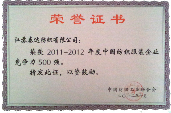 中國(guó)紡織服裝企業(yè)競(jìng)爭(zhēng)力500強(qiáng)